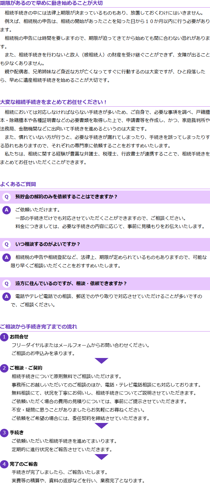 相続に注力しており、相続を得意とする者が、ご相談を承りますので、安心してお任せください。