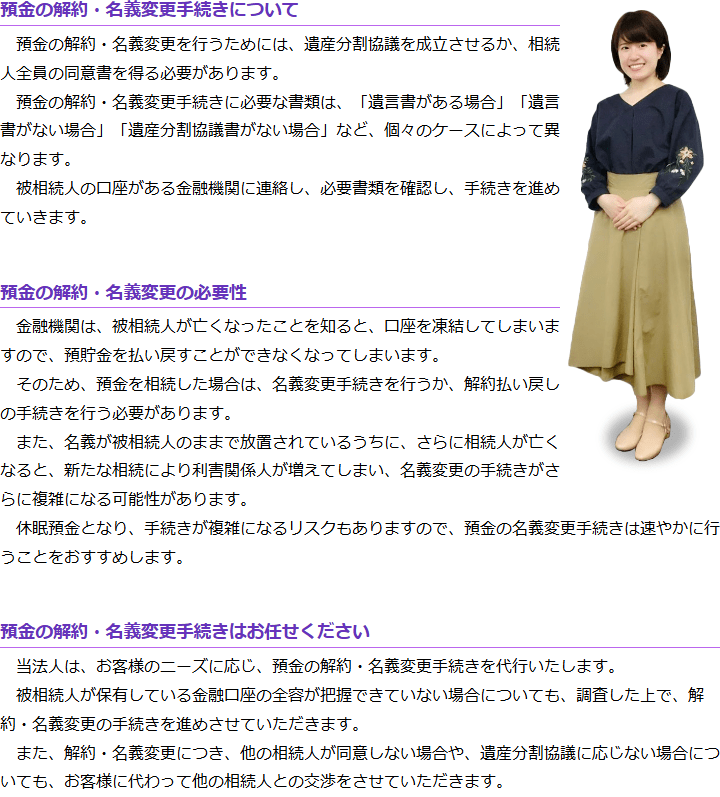 池袋の『預金・貯金の解約・名義変更』はお任せください。